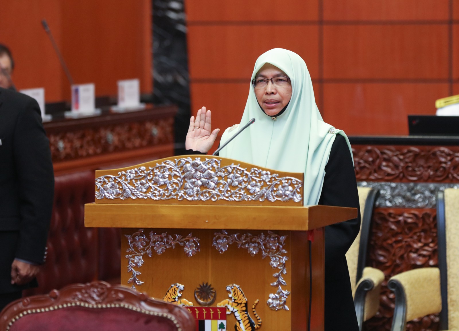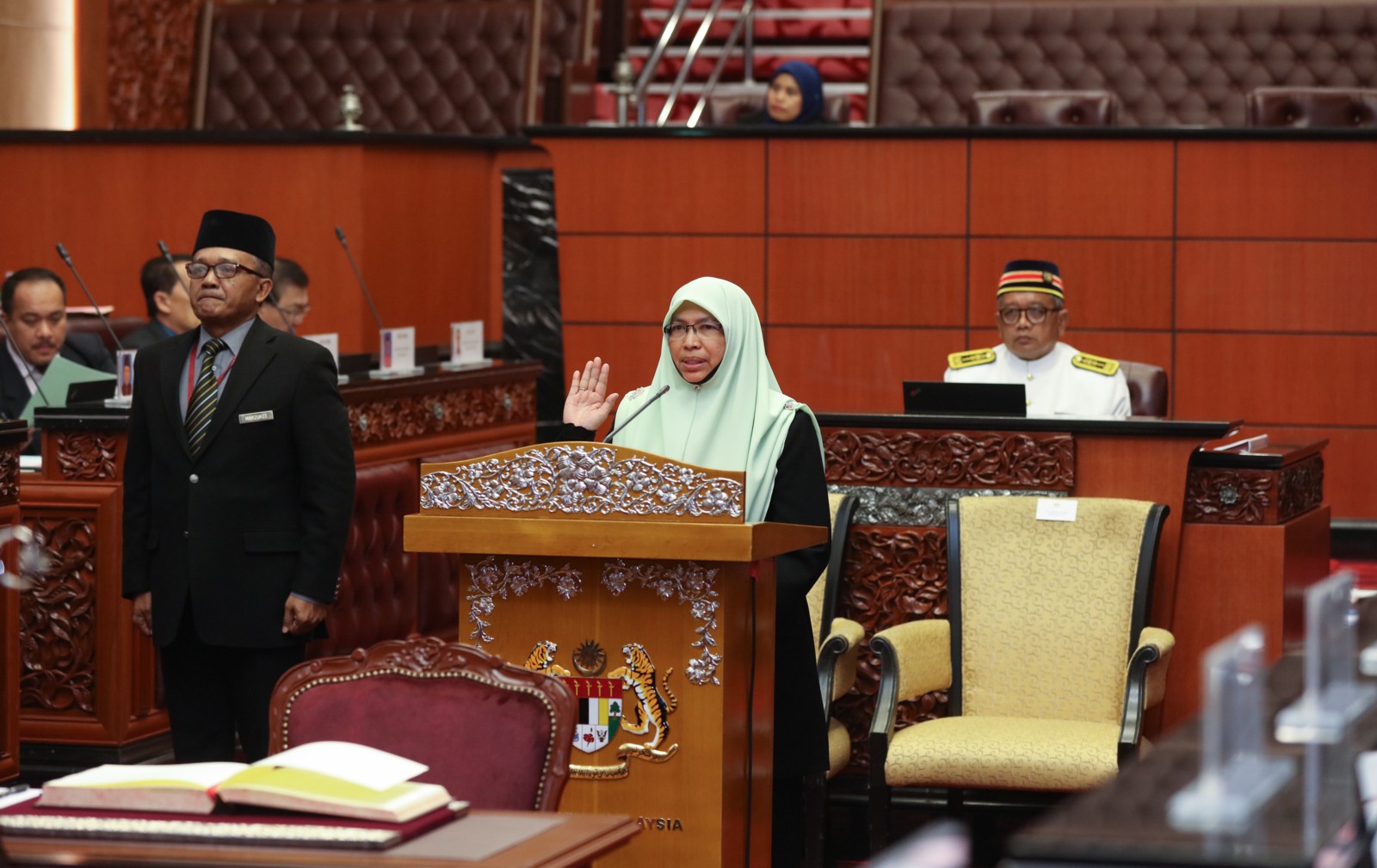 Upacara Angkat Sumpah bagi Ahli-Ahli Dewan Negara seperti berikut: