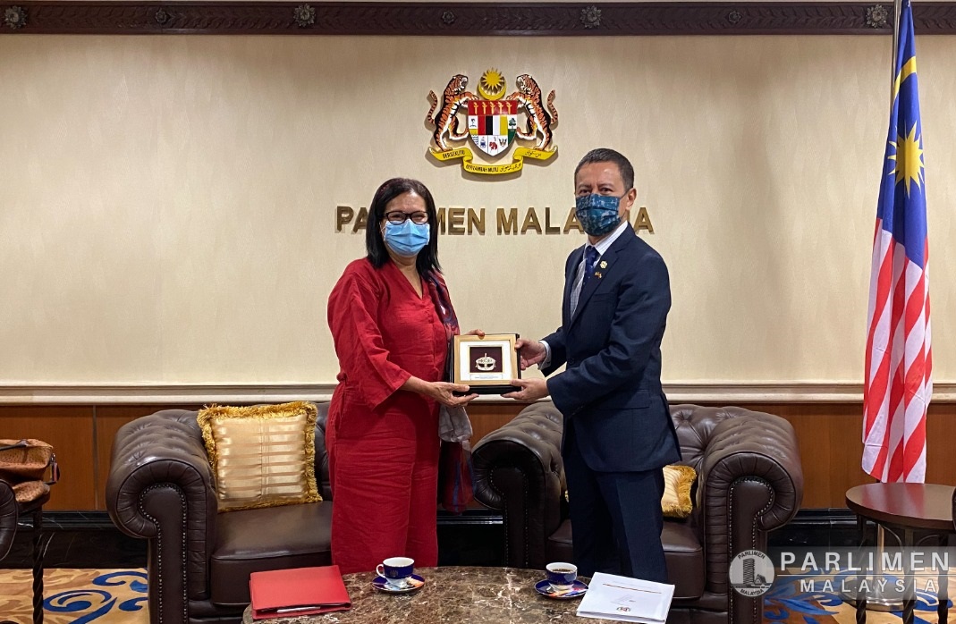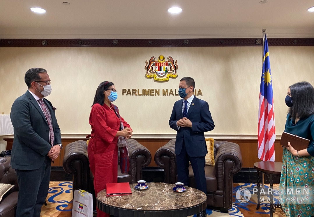 Kembali Ke Senarai | KUNJUNGAN HORMAT KE ATAS YB DATUK AZHAR AZIZAN HARUN, YANG DI-PERTUA DEWAN RAKYAT OLEH MDM. MORELLA ANTONI BARRETO LÓPEZ, AMBASSADOR EXTRAORDINARY AND PLENIPOTENTIARY OF THE BOLIVARIAN REPUBLIC OF VENEZUELA BERLANGSUNG PADA 25 MAC 2021 DI PARLIMEN