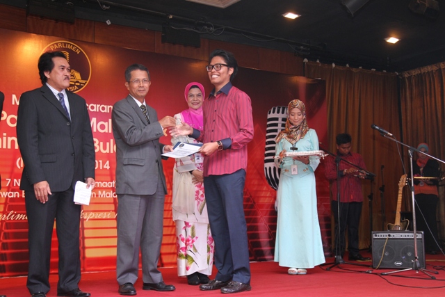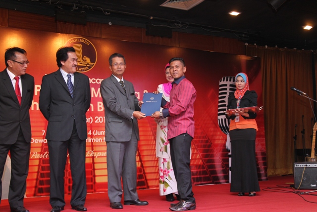 Salah seorang pemenang saguhati Pertandingan Mencipta Lagu Rasmi Parlimen Malaysia iaitu En.Albasya\'ari Abdul Latif dari Bahagian Komunikasi Korporat E73G93491001