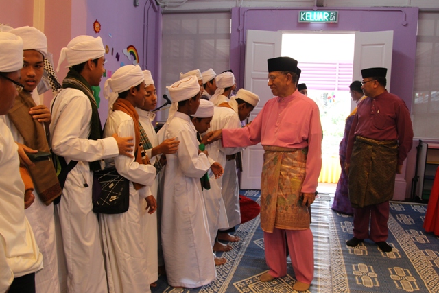 YB Senator Tan Sri Abu Zahar Ujang, Yang di-Pertua Dewan Negara beramah mesra dengan para pelajar dari Maahad Tahfiz Al-Quran Dar Al-Najah Hulu Langat