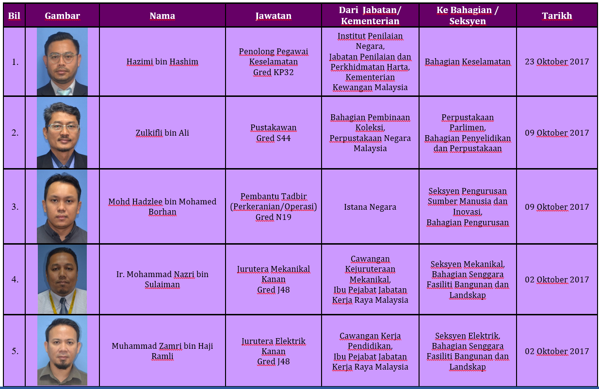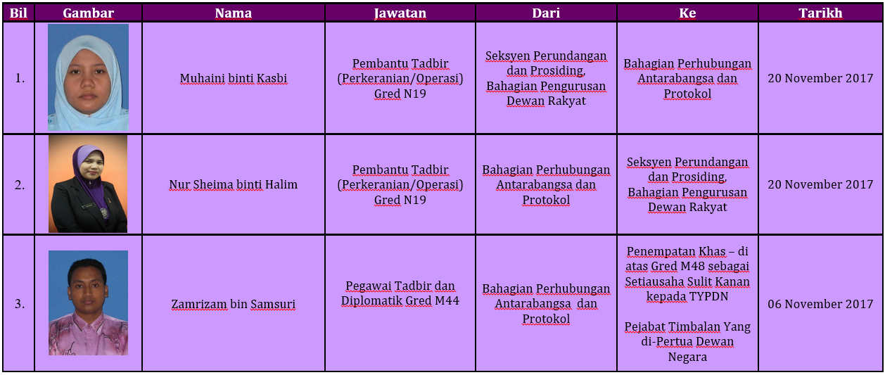 PELANTIKAN BARU KAKITANGAN PARLIMEN MALAYSIA![]() PENEMPATAN BARU KAKITANGAN PARLIMEN MALAYSIA ![]() PERTUKARAN DALAMAN KAKITANGAN PARLIMEN MALAYSIA ![]() PERTUKARAN KELUAR KAKITANGAN PARLIMEN MALAYSIA ![]() |