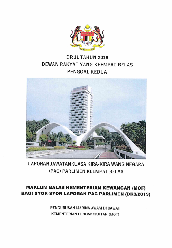 DR11/2019 - Maklum Balas Kementerian Kewangan (MOF) Bagi Syor-Syor Laporan PAC Parlimen (DR3/2019) Berhubung Pengurusan Marina Awam Di Bawah Kementerian Pengangkutan (MOT)